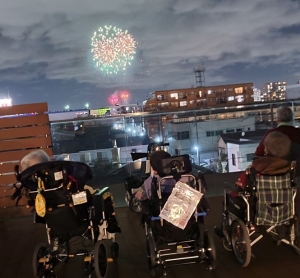 続いて、川口市内で上がった打ち上げ花火を屋上で鑑賞した様子をご紹介します。